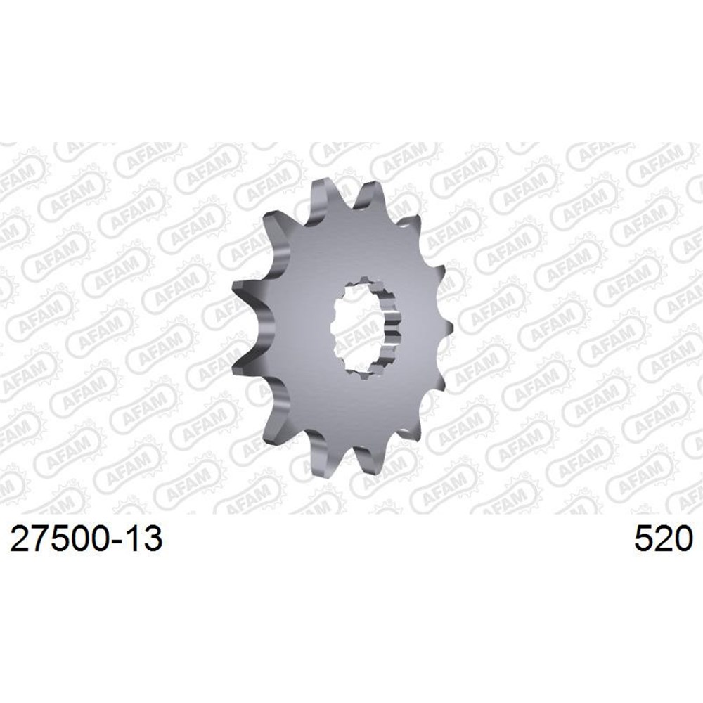AFAM Self-cleaning front sprockets (+ in the reference) are available for MX and Off-Road use. On each side of the tooth bottom, they have a groove which evacuates sand and mud from the sprocket, this way dirt does not accumulate between sprocket and chain. This accumulated dirt causes over-tension to the chain and as a result sprocket and chain wear out very quickly and may even block your bike. With this mud grooved sprocket, you avoid these problems.