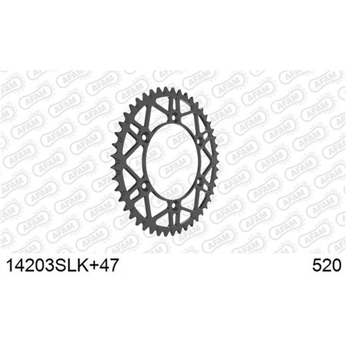 AFAM Self-cleaning steel rear Off Road sprocket (SLK+ suffix in the reference). A maximum weight saving (SL: Super Light) thanks to its new generation design in black colour by electrophoresis (K: Black) and equipped with mud grooves make this sprocket ideal for extreme conditions, from sand races, the Dakar Rally to MXGP