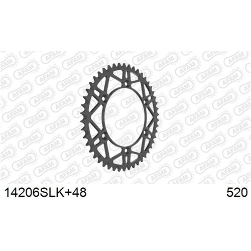 AFAM Self-cleaning steel rear Off Road sprocket (SLK+ suffix in the reference). A maximum weight saving (SL: Super Light) thanks to its new generation design in black colour by electrophoresis (K: Black) and equipped with mud grooves make this sprocket ideal for extreme conditions, from sand races, the Dakar Rally to MXGP