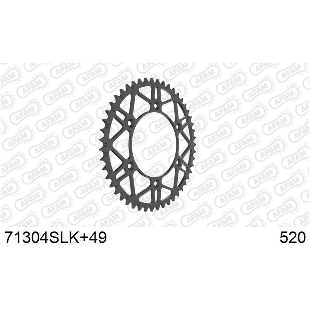 AFAM Self-cleaning steel rear Off Road sprocket (SLK+ suffix in the reference). A maximum weight saving (SL: Super Light) thanks to its new generation design in black colour by electrophoresis (K: Black) and equipped with mud grooves make this sprocket ideal for extreme conditions, from sand races, the Dakar Rally to MXGP