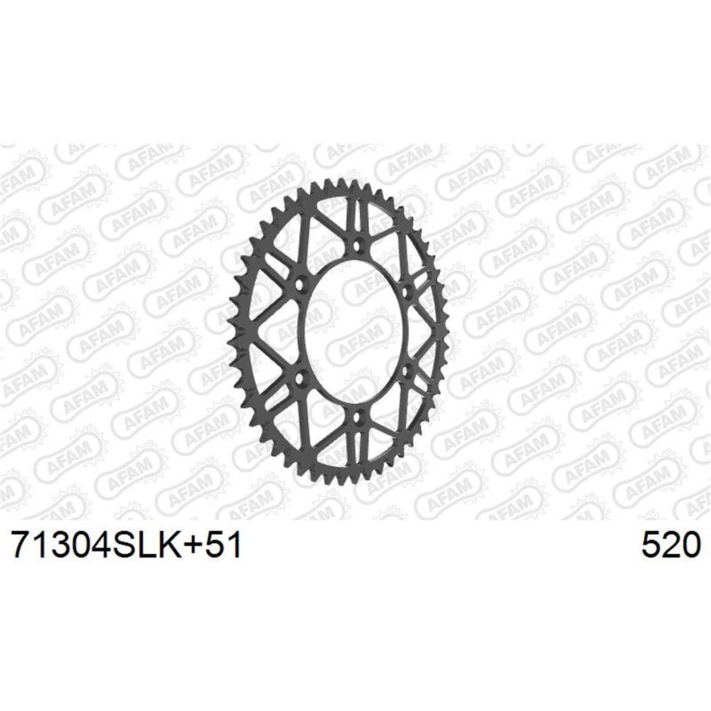 AFAM Self-cleaning steel rear Off Road sprocket (SLK+ suffix in the reference). A maximum weight saving (SL: Super Light) thanks to its new generation design in black colour by electrophoresis (K: Black) and equipped with mud grooves make this sprocket ideal for extreme conditions, from sand races, the Dakar Rally to MXGP
