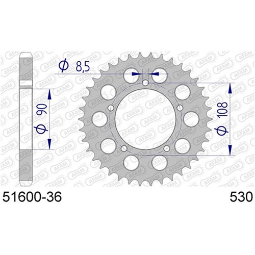 AFAM Racing Aluminum Sprockets (- in the reference) also have this harder surface obtained by hard anodizing. Most of these sprockets exist in the original pitch, but also in a conversion model for a narrower chain. These AFAM sprockets have custom tolerances for race use and a weight-saving design to ensure the most efficient transmission.