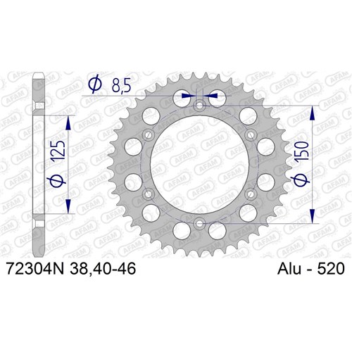AFAM Racing Aluminium Sprockets (+in the reference) also have this harder surface obtained by hard anodizing. Most of these sprockets exist in the original pitch, but also in a conversion model for a narrower chain. These AFAM sprockets have custom tolerances for race use and a weight-saving design to ensure the most efficient transmission.