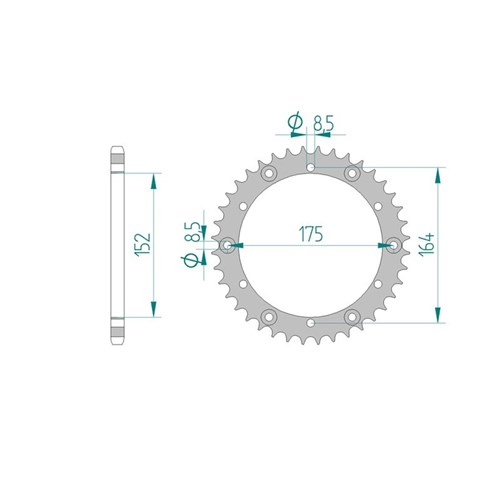 AFAM Racing Aluminum Sprockets (- in the reference) also have this harder surface obtained by hard anodizing. Most of these sprockets exist in the original pitch, but also in a conversion model for a narrower chain. These AFAM sprockets have custom tolerances for race use and a weight-saving design to ensure the most efficient transmission.