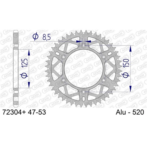 AFAM Racing Aluminium Sprockets (+in the reference) also have this harder surface obtained by hard anodizing. Most of these sprockets exist in the original pitch, but also in a conversion model for a narrower chain. These AFAM sprockets have custom tolerances for race use and a weight-saving design to ensure the most efficient transmission.