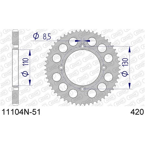 AFAM Racing Aluminium Sprockets (+in the reference) also have this harder surface obtained by hard anodizing. Most of these sprockets exist in the original pitch, but also in a conversion model for a narrower chain. These AFAM sprockets have custom tolerances for race use and a weight-saving design to ensure the most efficient transmission.