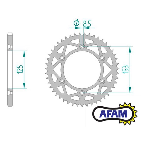 AFAM Racing Aluminium Sprockets (+in the reference) also have this harder surface obtained by hard anodizing. Most of these sprockets exist in the original pitch, but also in a conversion model for a narrower chain. These AFAM sprockets have custom tolerances for race use and a weight-saving design to ensure the most efficient transmission.