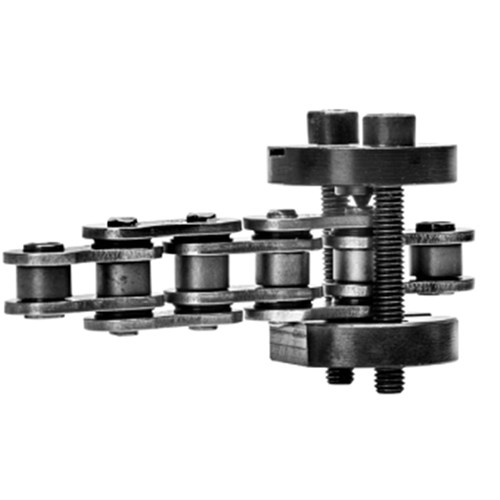 This small but very ingenious device allows you to rivet each 5/8 pitch connecting link with hollow pin head. You can easily press the loose side plate onto the pins.