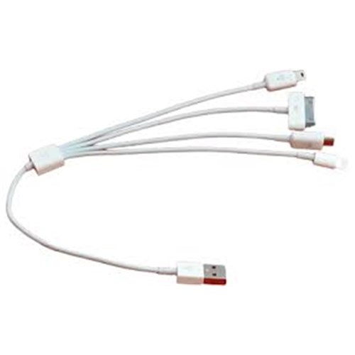 This 4 into 1 USB Cable is 7" long. Provides for a convenient cable that can charge most of your USB electronic devices since it has the most common tips attached. Saves space and is easy to carry