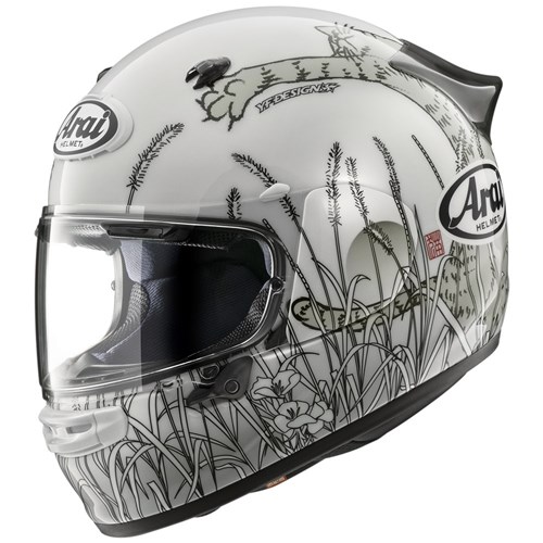 • VENTILATION - Dual tear-duct top intake vents. 3D Arai logo duct. Air-scoop chin vent. Brow vents. One-piece rear exhaust with spoiler function. Neck exhaust vent. Side exhausts.