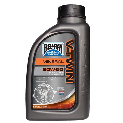 V-Twin Mineral Engine Oil 20W-50 is a value priced, multi-grade, 4-stroke motorcycle oil formulated for V-Twin engines. It is formulated with high viscosity Index and low volatility petroleum base oils.