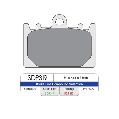 Recommended for all late model sport bikes, the highly acclaimed SDP Sport HH + compound offers the ultimate in fast road, track day and high-performance braking. The unique sintered copper alloy friction material has been specifically developed to provide an industry high “HH+” friction rating with consistent, powerful, controllable braking performance together with low lever effort, no noise, low rotor wear and reduced dust.