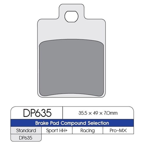The DP Standard brake pads are our OEM replacement sintered metal compound. Ideal for everyday street, off-road and ATV use, they provide excellent all-round braking hot or cold, wet or dry. Where applicable a high-tech ceramic heat shield is applied to the rear of each backplate to reduce the heat transfer into the fluid and prevent brake fade. Lasting up to 3 times the mileage of most other brands they have one of the lowest wear rates on the market. Very low levels of brake dust and no noise and no thermal cycle bedding-in required are also benefits of the DP Standard