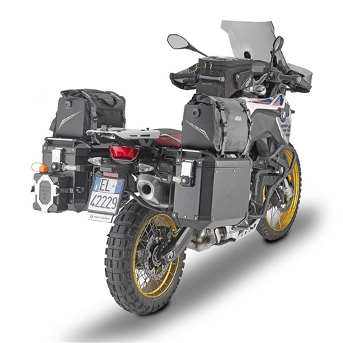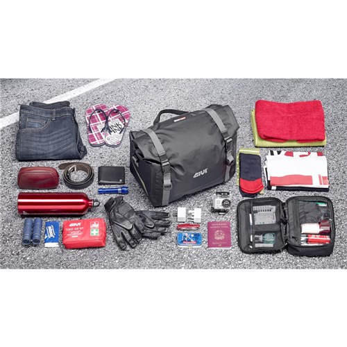 Roll top closure and seam sealed construction keeps gear super dry and multiple lashing points enables easy tethering to most bikes. Can also be mounted on top of Outback Trekker side cases for additional storage capacity.