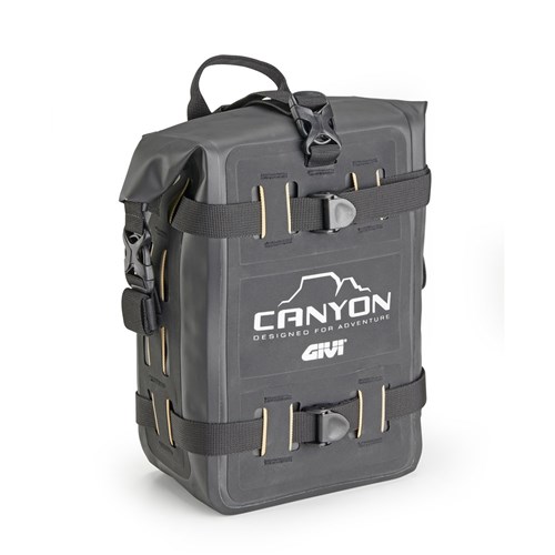 The waterproof engine guard and cargo bag from the Canyon range is made from high-quality, abrasion-resistant materials which have been heat-sealed at high frequency: thanks to this technique, with its absence of seams, the bag's impermeability is guaranteed even under heavy rain and extreme conditions.