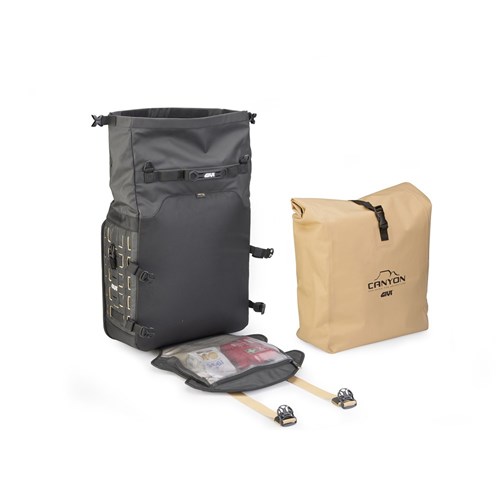 The loops of the M.O.L.L.E. system featured on the sides of the bags mean extra loads can be added, making it possible to combine the bags with other models from the Canyon range such as the small GRT730, which can hold tools, a first-aid kit or a pair of flasks.