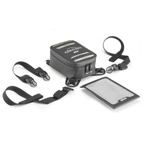 3-LTR water-resistant tank bag, with cam buckle straps for quick coupling and release