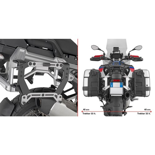 Specific black painted steel and anodised aluminium adapter to be used with a pair of MONOKEY® side-cases on the original pannier holder, offered as an option by the manufacturer it can only be mounted on the original pannier holder, offered as an option by the manufacturer