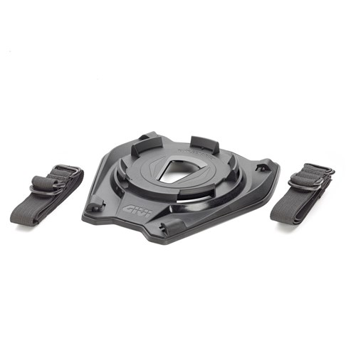 It is compatible with most GIVI TANKLOCK and TanklockED system bags with a flat base, but not with those with a contoured/curved base.