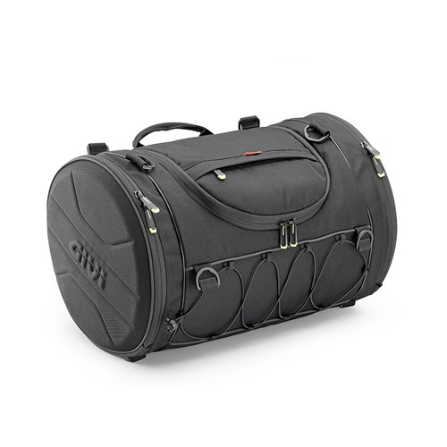 Double D-Ring fitting system with straps on the front and the side of the bag, with a central safety strap on the base, for fitment under the seat or tail.