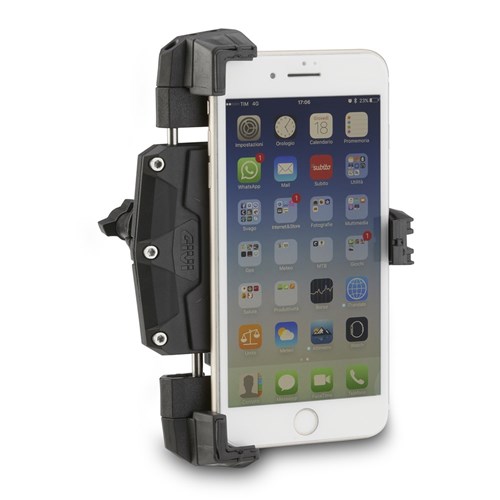 • Made from materials with high chemical and mechanical resistance: metal parts constructed from stainless steel and anodized aluminium; techno-polymer plastic elements moulded with a techno-elastomer to significantly increase the longevity of each component and to provide grip in the smartphone support areas• Compatible with diameters between 8mm and 35 mm