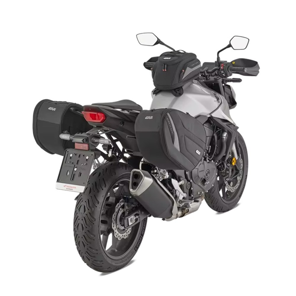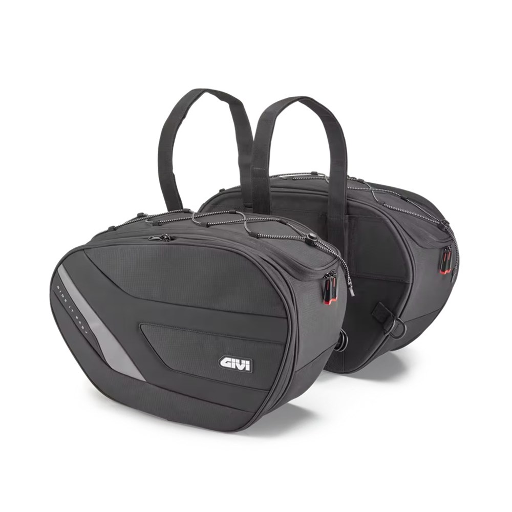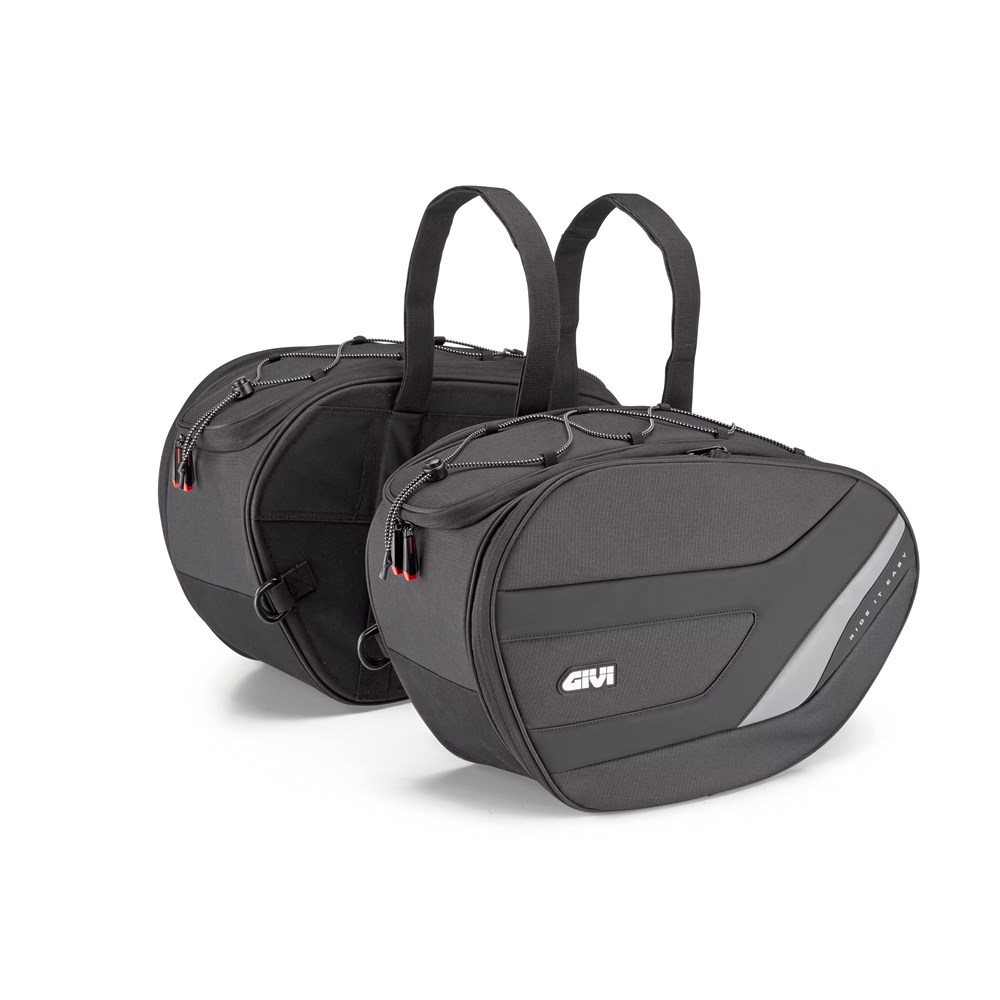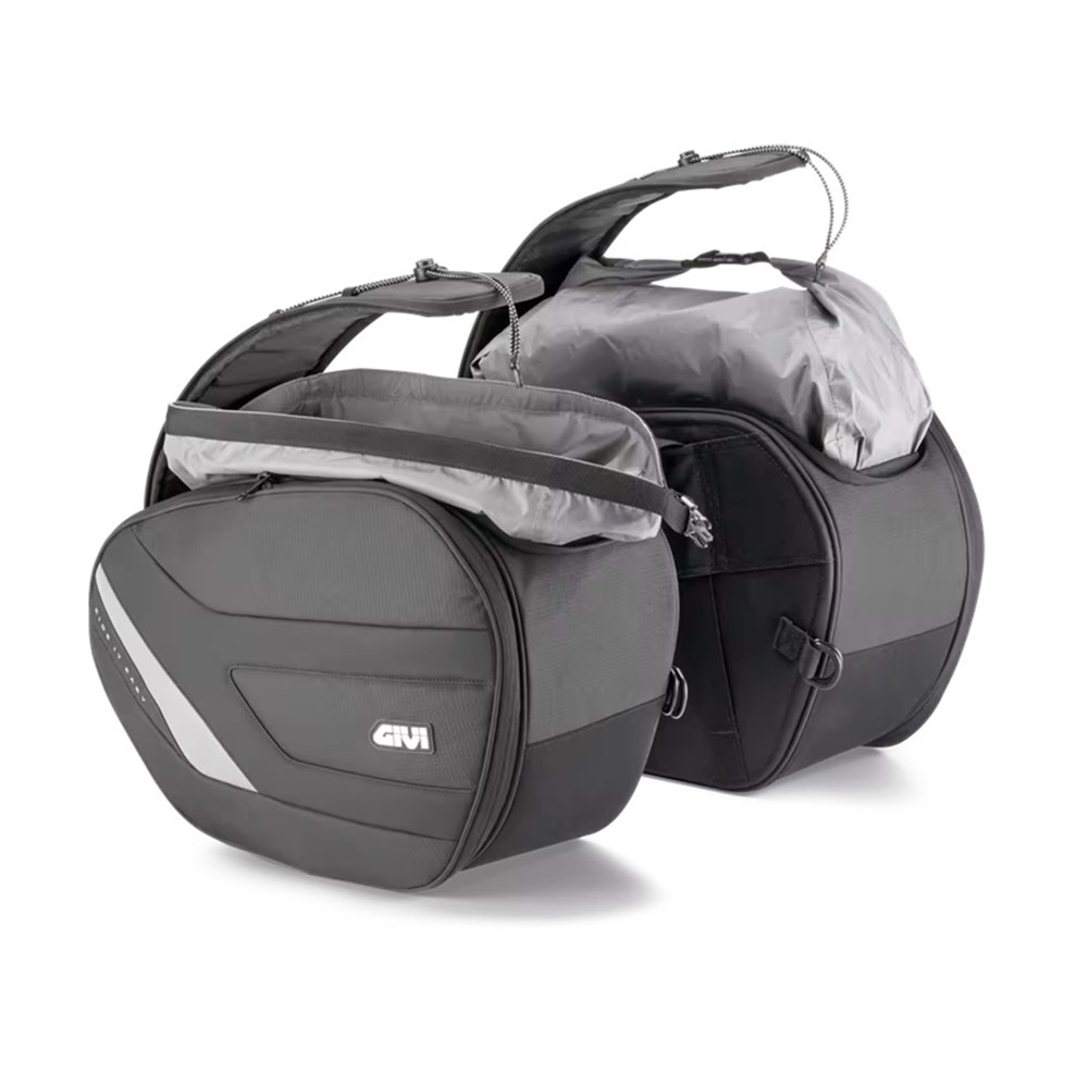 Pair of soft side bags designed to provide maximum load capacity, practicality, and safety for two-wheel travel. Made with durable materials and functional details, they are ideal for touring bikes, naked bikes, and maxi scooters.