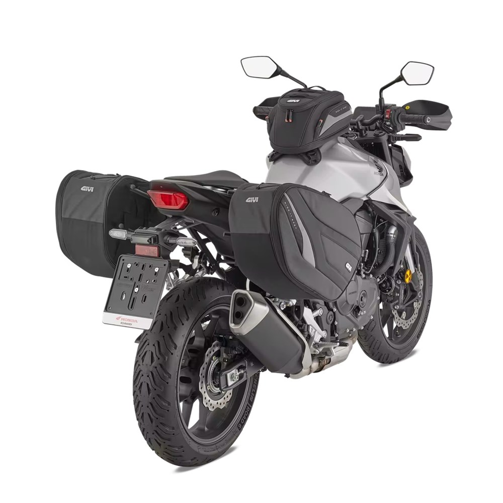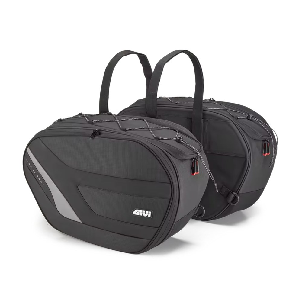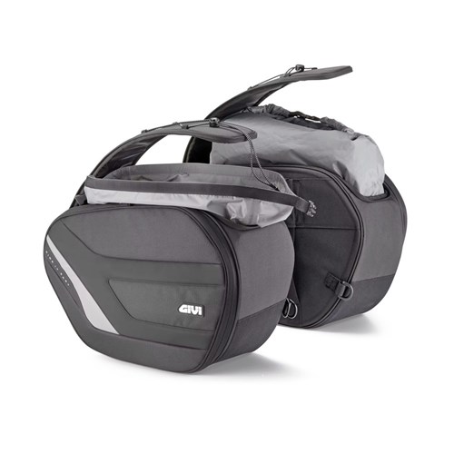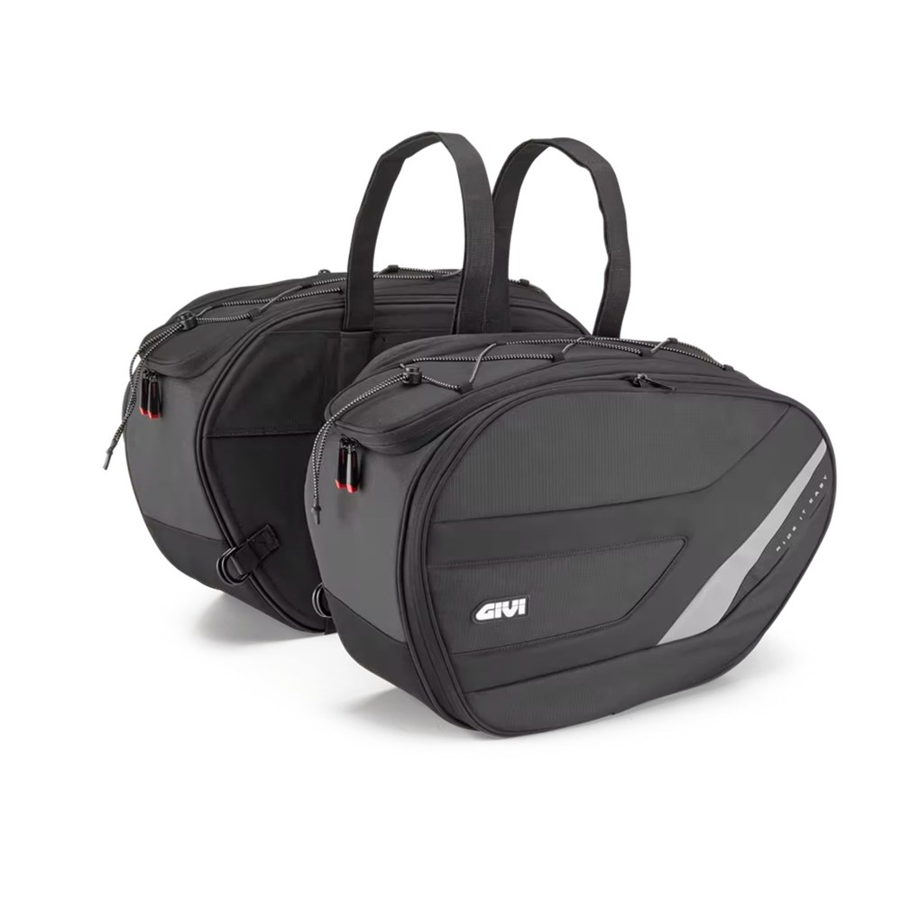 Pair of soft side bags designed to provide maximum load capacity, practicality, and safety for two-wheel travel. Made with durable materials and functional details, they are ideal for touring bikes, naked bikes, and maxi scooters.
