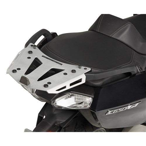 The Givi SRA5106 Top Case Rack is a versatile and robust bike-specific aluminium rear rack that allows you to mount any Monokey top case to the bike. The included aluminium plate also can be used to anchor soft luggage.