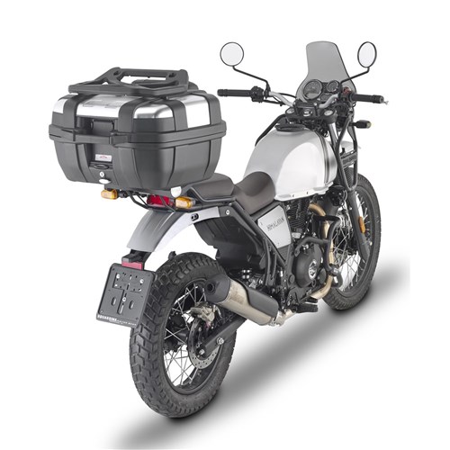The Givi SR9054 is a specific kit required to install a Monokey or Monolock Top Case Plate on a ROYAL ENFIELD HIMALAYAN 21-