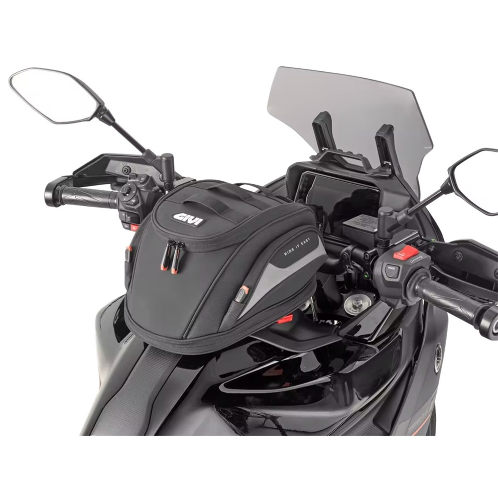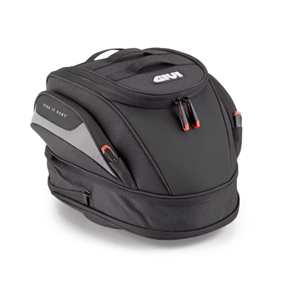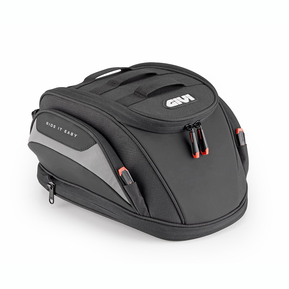 Tank bag with Tanklock fixing system, designed to offer convenience, compatibility and security when travelling on two wheels. Made using sturdy materials and with functional details, it is ideal for everyday use and for motorcycle touring.
