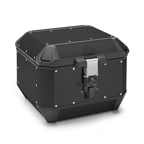 Trekker Alaska motorcycle case in aluminium, matt black painted, 44 LTR. Holds one modular helmet. Featuring the MONOKEY fixing system, which allows for a single lock to open and release the plate with the same key. Compatible with all Monokey plates, apart from those with the stop light kit connection.