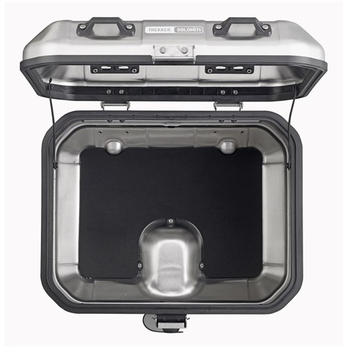 This practical top box features four nylon belt strap loops on the lid to allow attachment of additional bags with GIVI Trekker straps. Inside the lid, hooks were added to secure an elastic cargo net for additional organization. This top case is ready to store one full-face or one modular helmet or two open face helmets.