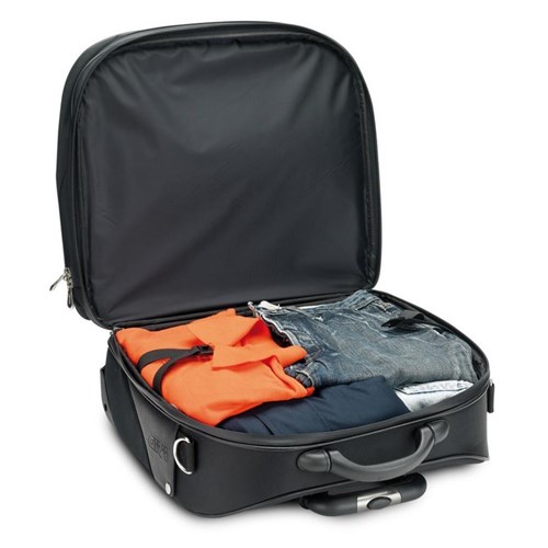 The compact design of the new Givi trolley allows for storage of up to 47 litres. It is made of materials that aim for maximum product durability. It has been made of resistant nylon with PVC finishes that give it a leather-like appearance without fear of the deterioration that this type of material suffers.