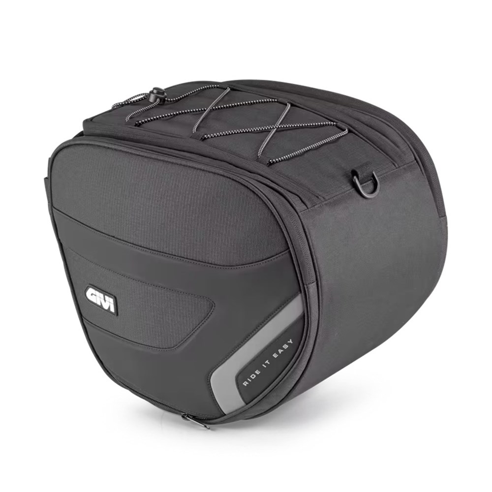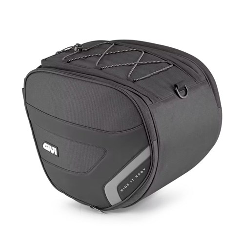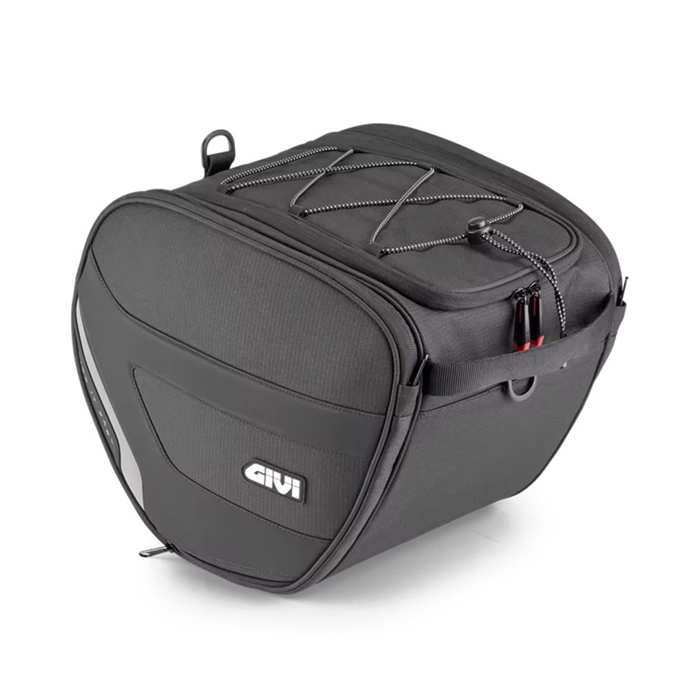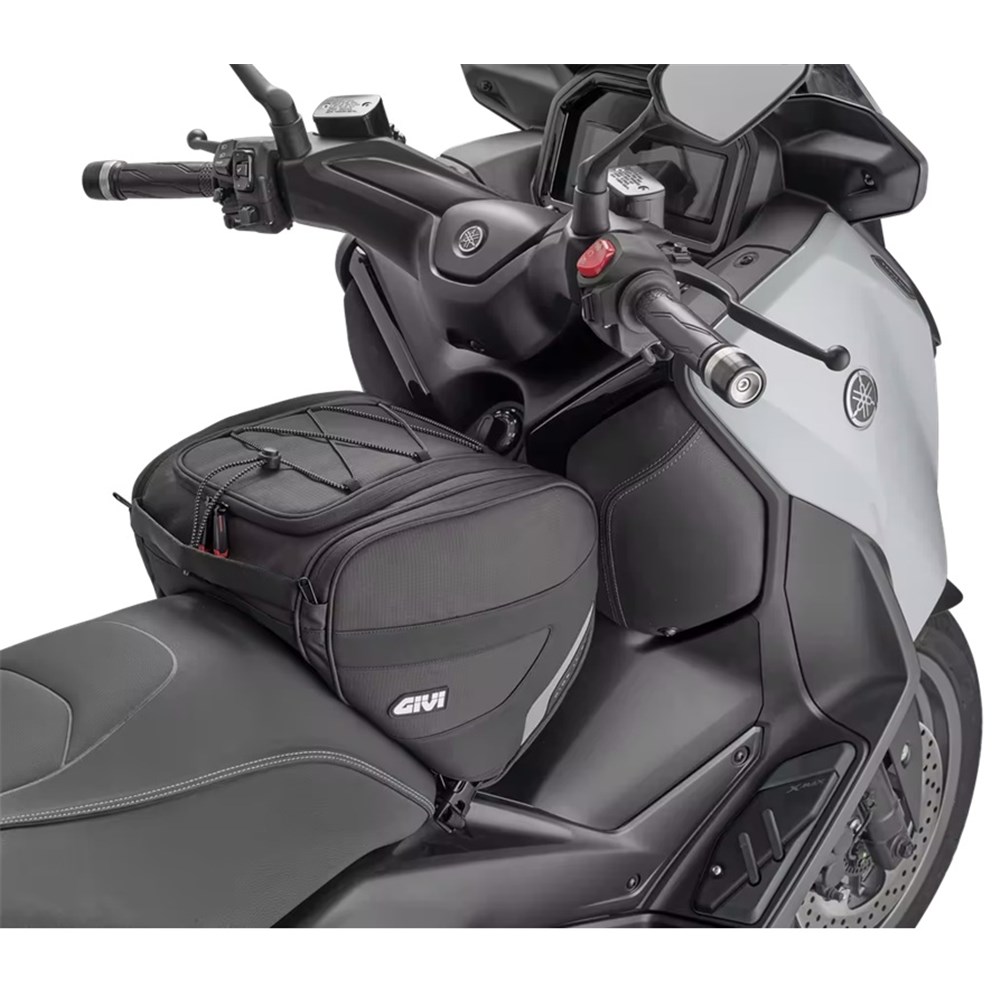 Tunnel bag, designed to be positioned on the tunnel of scooters and maxi-scooters, combining load capacity, functionality and practicality in a compact, robust format.