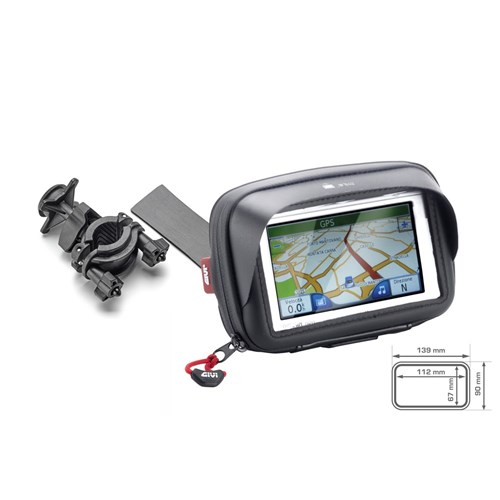 Thanks to the mounting system, designed and patented by GIVI, to attach and remove the device holder is extremely simple and fast, taking only a matter of seconds. Loosening the handle on the mounting support can adjust the position of the device holder according to the rider’s specific requirements, at any time and without the need for any tools. The shell has shock-absorbing inserts to protect the device being held. The product is also supplied with a safety strap, sunshade, touch-sensitive front surface, a power supply port and a waterproof cover to be used in the event of heavy rain.