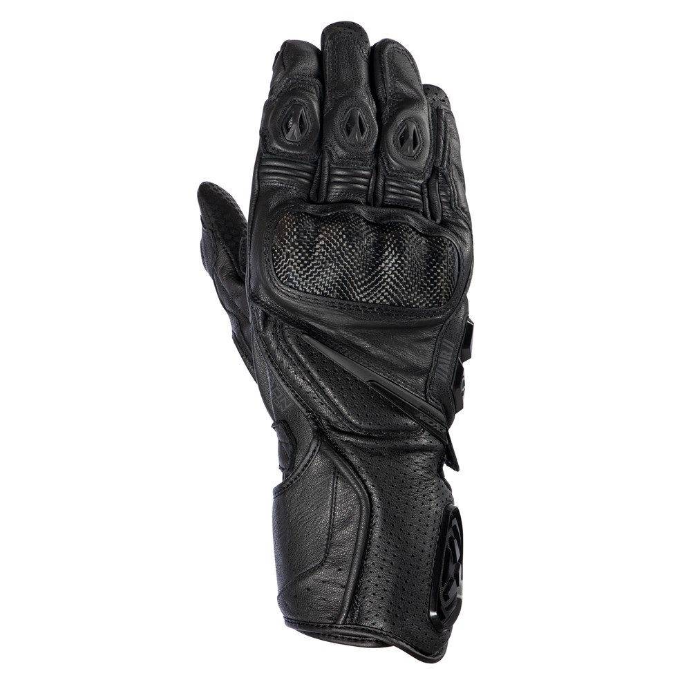 • Protections and shell: carbon knuckle shell, racing slider, reinforced palm, reinforced edging, anti-bend-back protection between the third and little fingers, reinforced 3D logo on cuff