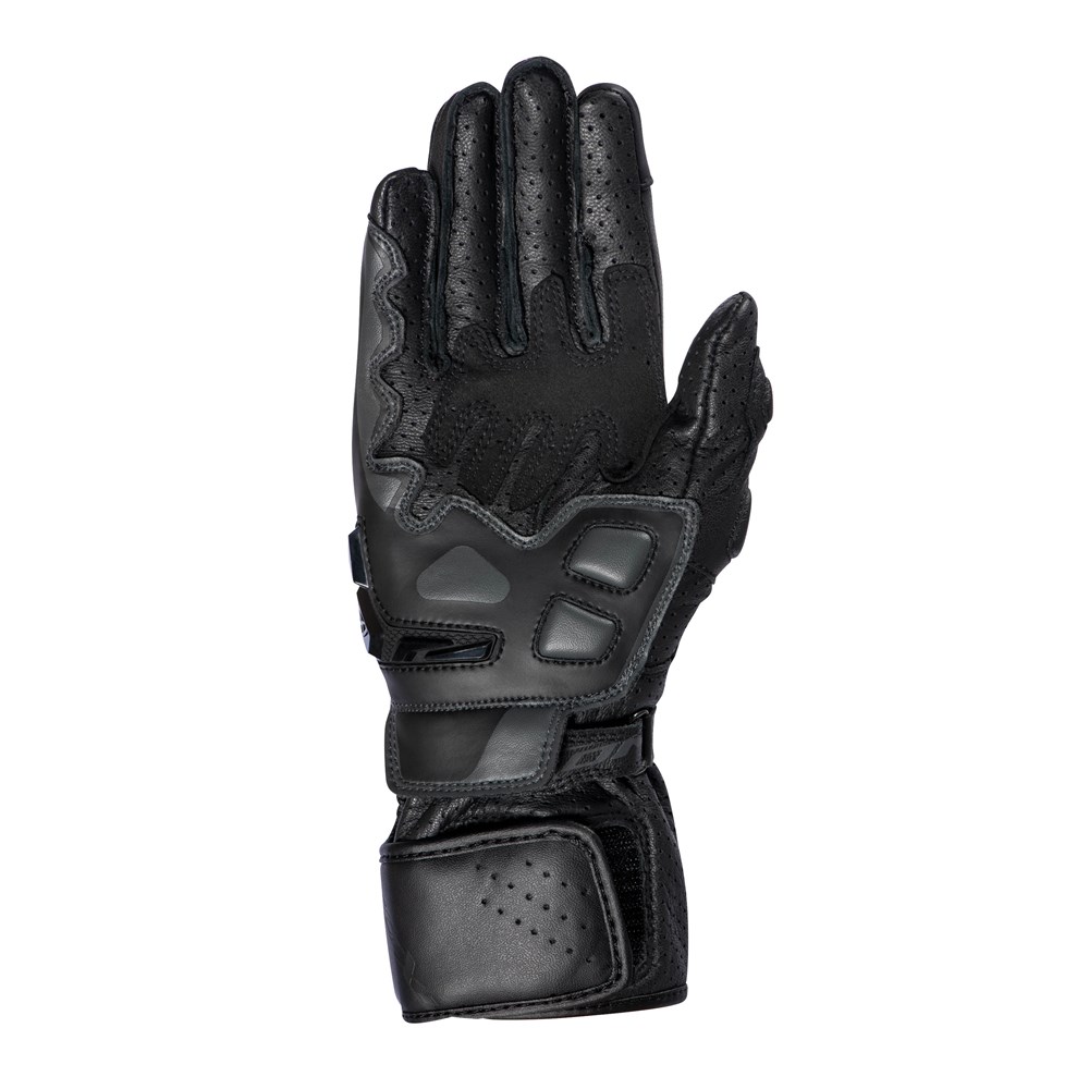• Protections and shell: leather-covered knuckle shell, racing slider, reinforced palm, reinforced edging, anti-bend-back protection between the third and little fingers