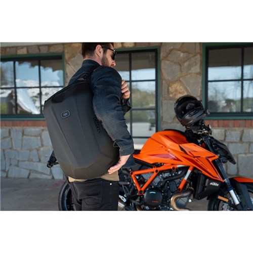 The Mach 1 Motorcycle Backpack with No Drag Technology is true to its name, with a streamlined single shot moulded exterior that won't deform from wind shear. The shoulder gasket conforms perfectly to your body, increasing your aerodynamics so you aren't dragged down. Still, it has a large main compartment with interior storage -- even an organizer panel to keep it all in place through every turn. The padded interior holds up to 15-inch laptops, and it's protected by a nearly waterproof exterior. Ergonomic padded adjustable shoulder straps work with a removable no slip sternum strap, so the only thing soaring is you.