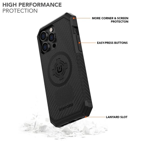 ROKFORM has become the go-to name brand for hard-working people seeking reliability, functionality, and durability from their phone cases. Our extra strength MAGMAX™ MagSafe® COMPATIBLE magnet array provides a hands-free connection to any magnet surface. Whether you're mounting to a motorcycle using the integrated RokLock® Twist Lock or instantly attaching to our magnetic mounts or accessories, you can focus on the things in life that really matter. No matter your adventure – the Rugged Case has you covered.