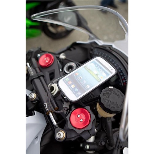 When you ride with the iPhone Motorcycle Fork Clamp Mount, you will have easy access and a clear view of your device while you ride. Keep your navigation in view, but out of the way, throughout your next ride. Enjoy easy access to your favorite diagnostic apps, like Road Trip and total control of your favorite playlists. You'll always be able to screen your calls and texts so you only have to pull over for the very important ones.