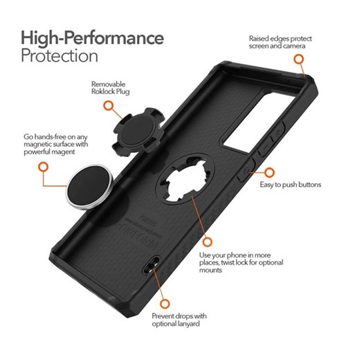 ROKFORM has become the go-to name brand for hard-working people seeking reliability, functionality, and durability from their phone cases. Our extra strength MAGMAX™ MagSafe® COMPATIBLE magnet array provides a hands-free connection to any magnet surface. Whether you're mounting to a motorcycle using the integrated RokLock® Twist Lock or instantly attaching to our magnetic mounts or accessories, you can focus on the things in life that really matter. No matter your adventure – the Rugged Case has you covered.