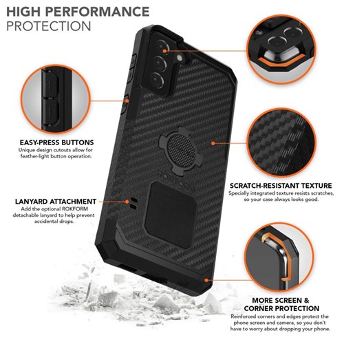 ROKFORM has become the go-to name brand for hard-working people seeking reliability, functionality, and durability from their phone cases. Our extra strength MAGMAX™ MagSafe® COMPATIBLE magnet array provides a hands-free connection to any magnet surface. Whether you're mounting to a motorcycle using the integrated RokLock® Twist Lock or instantly attaching to our magnetic mounts or accessories, you can focus on the things in life that really matter. No matter your adventure – the Rugged Case has you covered.