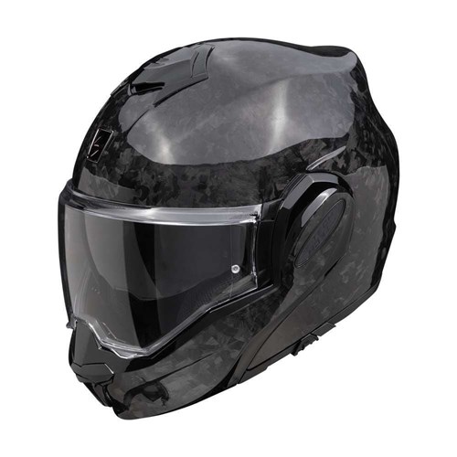 Brace yourself for the return of Scorpion EXO’s flip-back masterpiece, now enhanced with a carbon composite shell. The EXO-TECH EVO Carbon is a lightweight marvel, combining effortless operation and convenient features with the added benefit of a chin bar locker for optimal safety. You need prepare to be captivated by the EXO-TECH EVO Carbon’s small, sleek, and real full-face looking shell design. But it doesn’t stop there—immerse yourself in a world of nobility as the premium woven carbon fiber surface adds an extraordinary touch of elegance. This is sophistication at its finest.