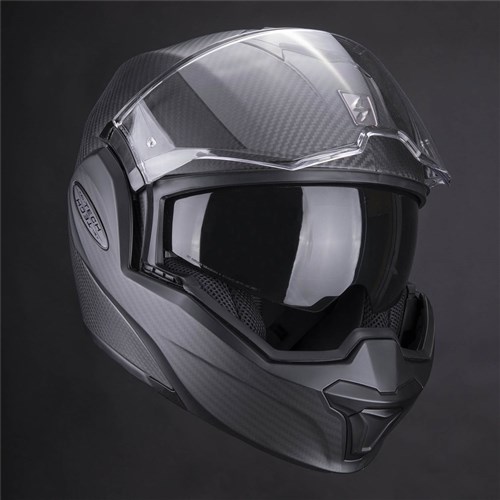 Brace yourself for the return of Scorpion EXO’s flip-back masterpiece, now enhanced with a carbon composite shell. The EXO-TECH EVO Carbon is a lightweight marvel, combining effortless operation and convenient features with the added benefit of a chin bar locker for optimal safety. You need prepare to be captivated by the EXO-TECH EVO Carbon’s small, sleek, and real full-face looking shell design. But it doesn’t stop there—immerse yourself in a world of nobility as the premium woven carbon fiber surface adds an extraordinary touch of elegance. This is sophistication at its finest.