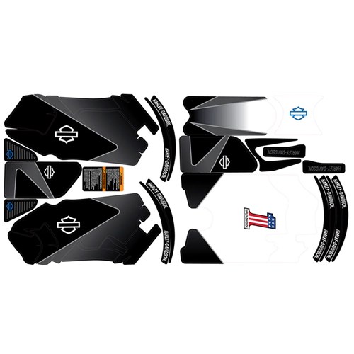 FULL WRAP HARLEY-DAVIDSON GRAPHIC KIT FOR 12eDRIVE and BRUSHED 16eDRIVE MODELS (no side panel venting). Kits do not include any customization or addition of names/numbers