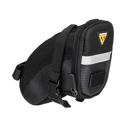 Aerodynamic seat bag holds tubes, tools and other repair items. Mounts with our innovative Quick Release Buckle system to fit all railed saddles. Four sizes offered to exactly fit rider’s needs.