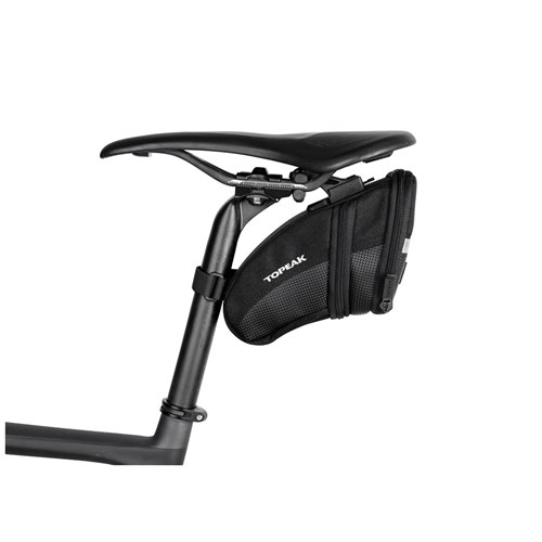 Aerodynamic seat bag holds tubes, tools and other repair items. Mounts and removes quickly with our innovative QuickClick® system. Four sizes offered to exactly fit rider’s needs.