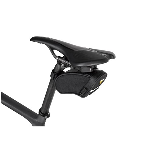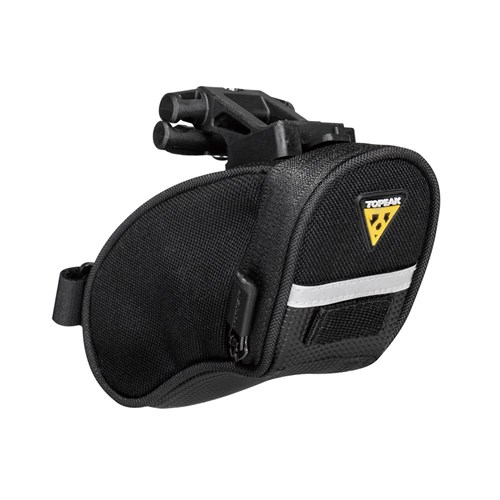 Aerodynamic seat bag holds tubes, tools and other repair items. Mounts and removes quickly with our innovative QuickClick® system. Four sizes offered to exactly fit rider’s needs.