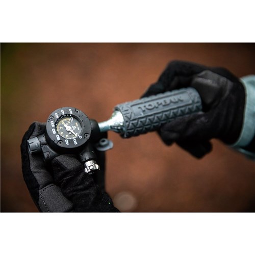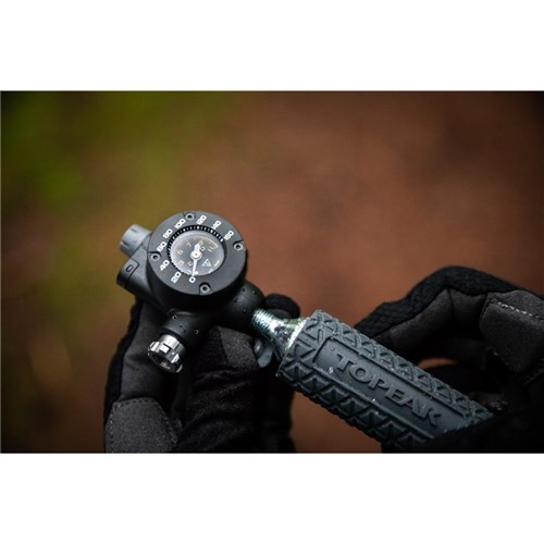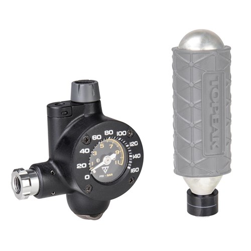 The world’s first CO2 inflator with tire gauge provides tire inflation and tire pressure measurement. The angled head fits Presta and Schrader valves and a special feature allows the user to adjust the flow while filling the tire. Dual end design allows for cartridge storage.