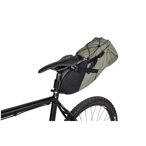 Listen to your inner voice of adventure. Pack up your gear, get on your bike, and ride that epic trail. BackLoader is a large capacity seat bag specially designed for bikepackers providing a streamlined way to carry gear without the need for a rear rack. Constructed of lightweight, highly water resistant and durable materials, it mounts and removes quickly. The upgraded saddle mount system, in conjunction with compression straps, reduces the pendulum effect associated with large rear payloads, providing a comfortable ride for those long miles. An easy access waterproof inner bag is included to keep contents completely dry.